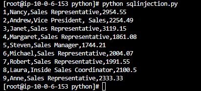 다음과 같이 파이썬을 이용한 SQL 인젝션 공격 실습을 완료하였습니다 .